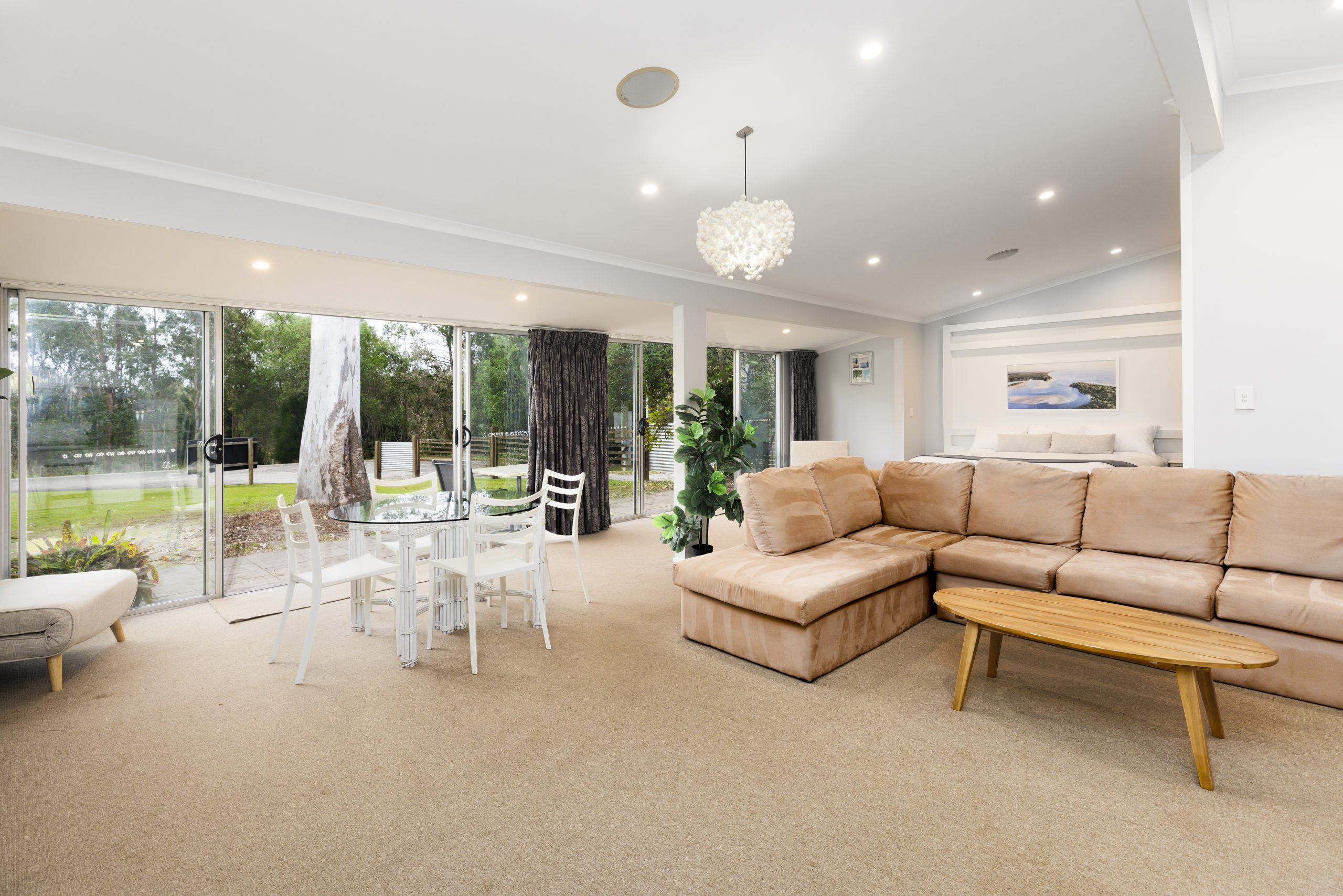 Ideal for couples or small families, our 1 Bedroom Cottage offers a spacious open-plan layout designed for a comfortable and relaxing stay. The main bedroom features a King bed or two King Singles, with up to 2 trundles available on request – sleeping up to 4 guests.
