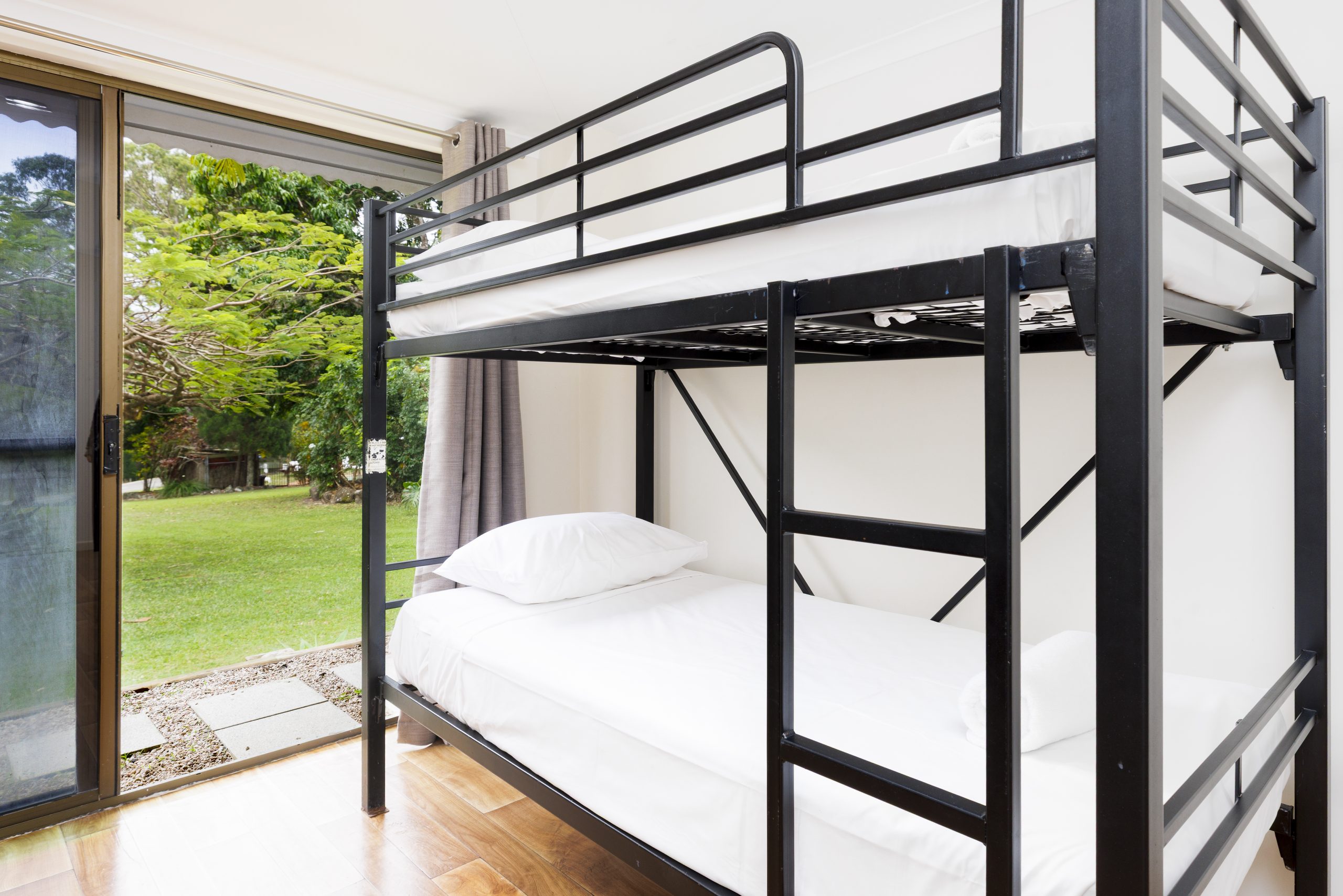 Tucked privately among shady trees, our 5 Bedroom Cottage is the perfect sanctuary for larger families or groups seeking space, comfort, and seclusion. Sleeping up to 10 guests, this charming retreat features a flexible layout with 1 King, 2 Queen, 1 Double, and 1 set of Single Bunks across five cosy bedrooms.