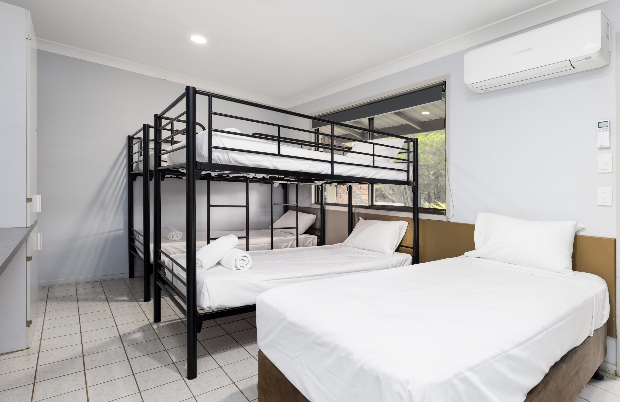 Each room features flexible bedding options with a King bed, Single bed, and two sets of Bunks (or 7 Singles), along with a convenient ensuite bathroom. Enjoy the freedom of self-catering with a fully equipped kitchen including a fridge/freezer, oven, microwave, kettle, and toaster. Air-conditioning ensures year-round comfort.