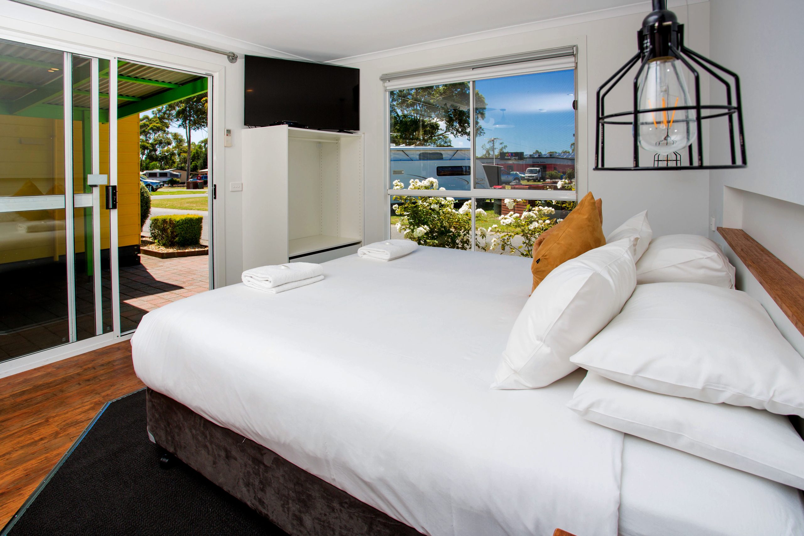 A cosy, open-plan studio cabin for couples or solo travellers. With kitchen, bathroom, dining, and verandah included, it’s a great space to rest and recharge after a day exploring Traralgon’s natural surrounds.