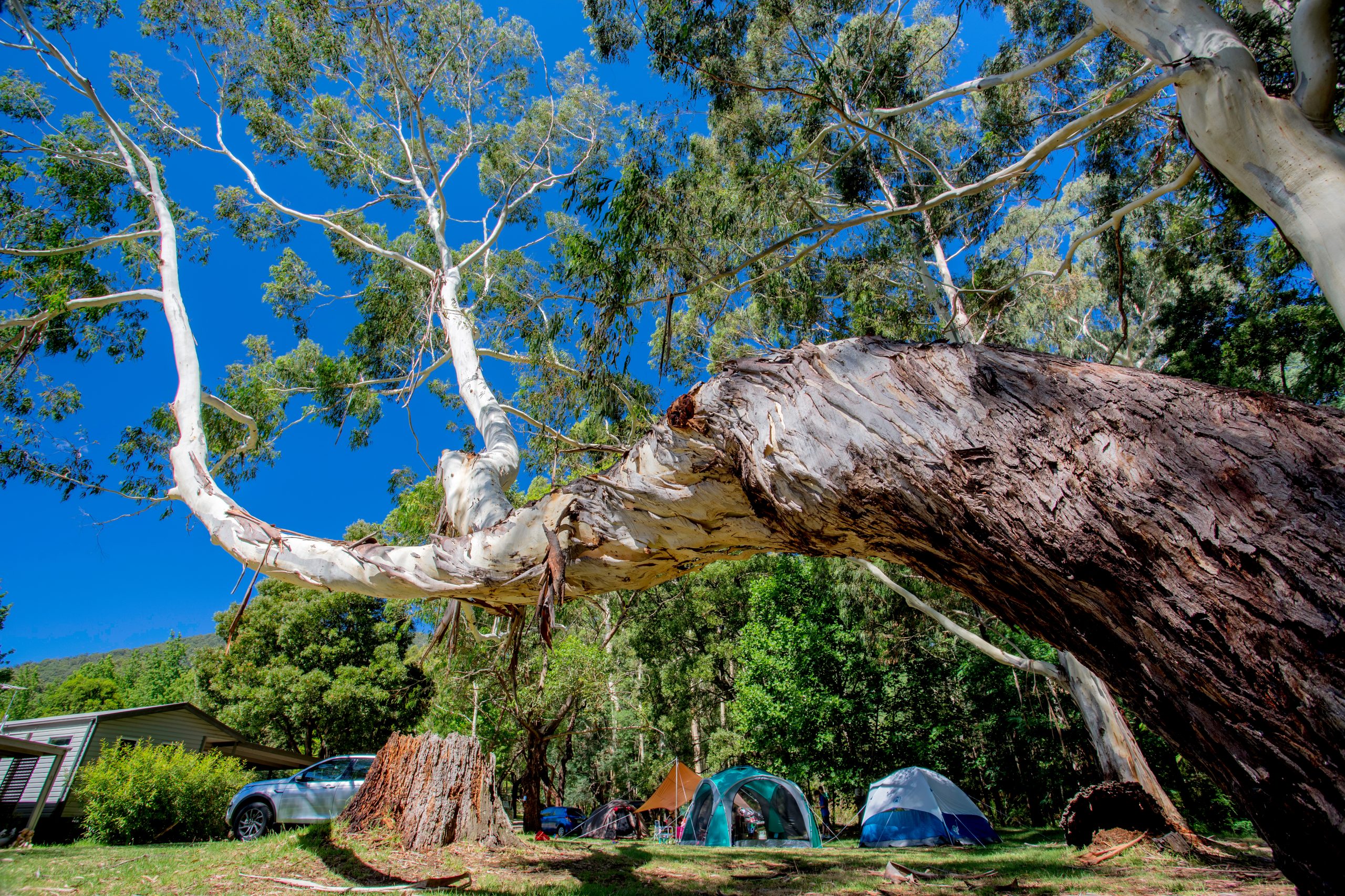 These powered sites are perfect for tents, offering shared kitchen, BBQs, and amenities nearby. A comfortable way to camp in this stunning part of Victoria.
