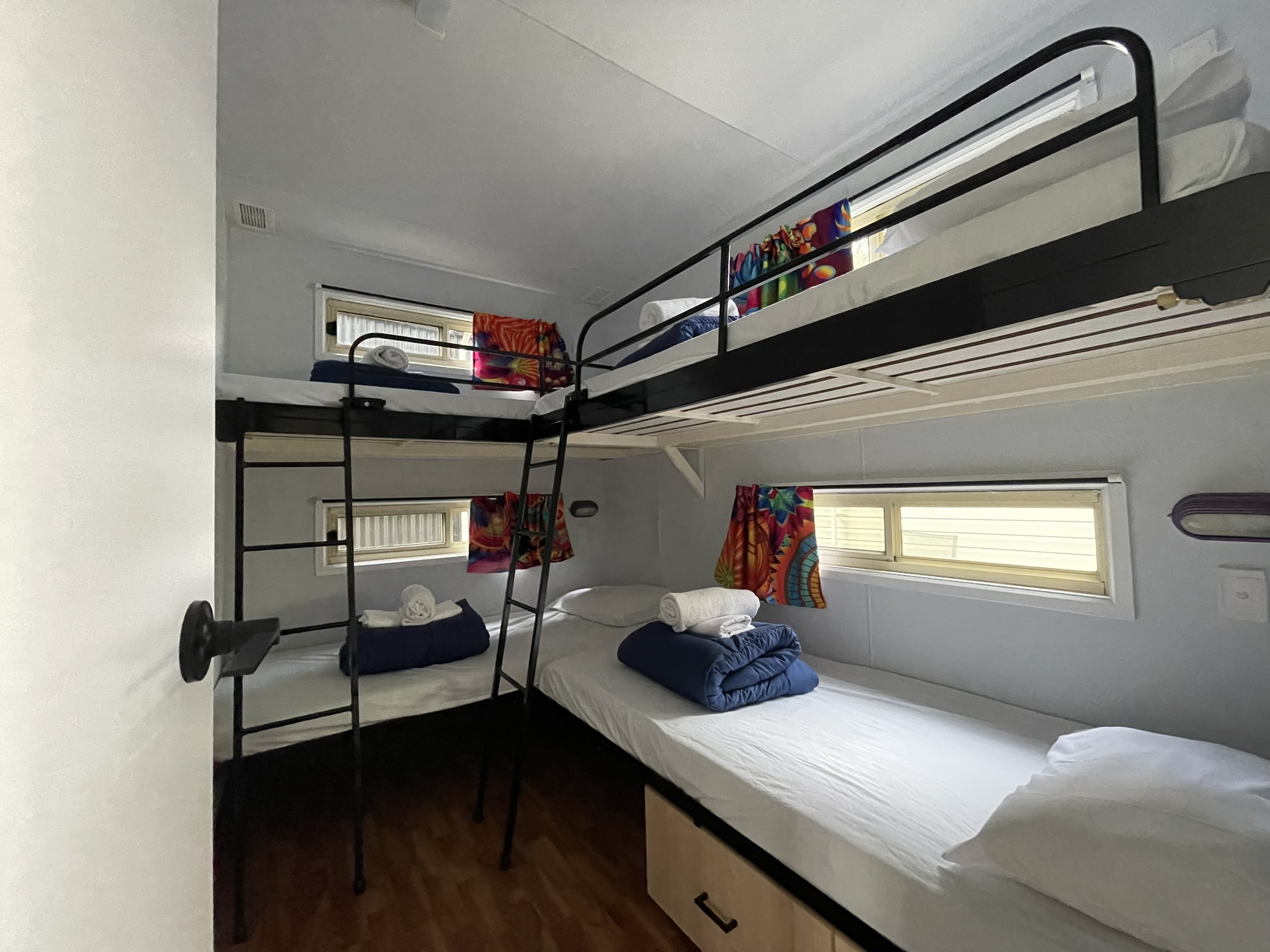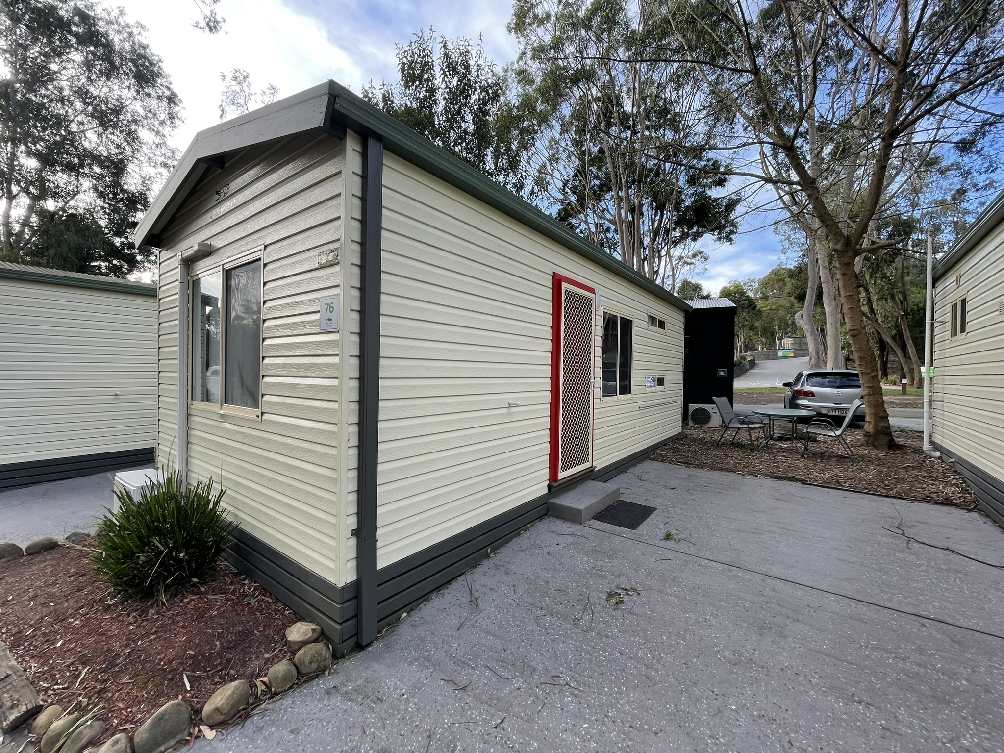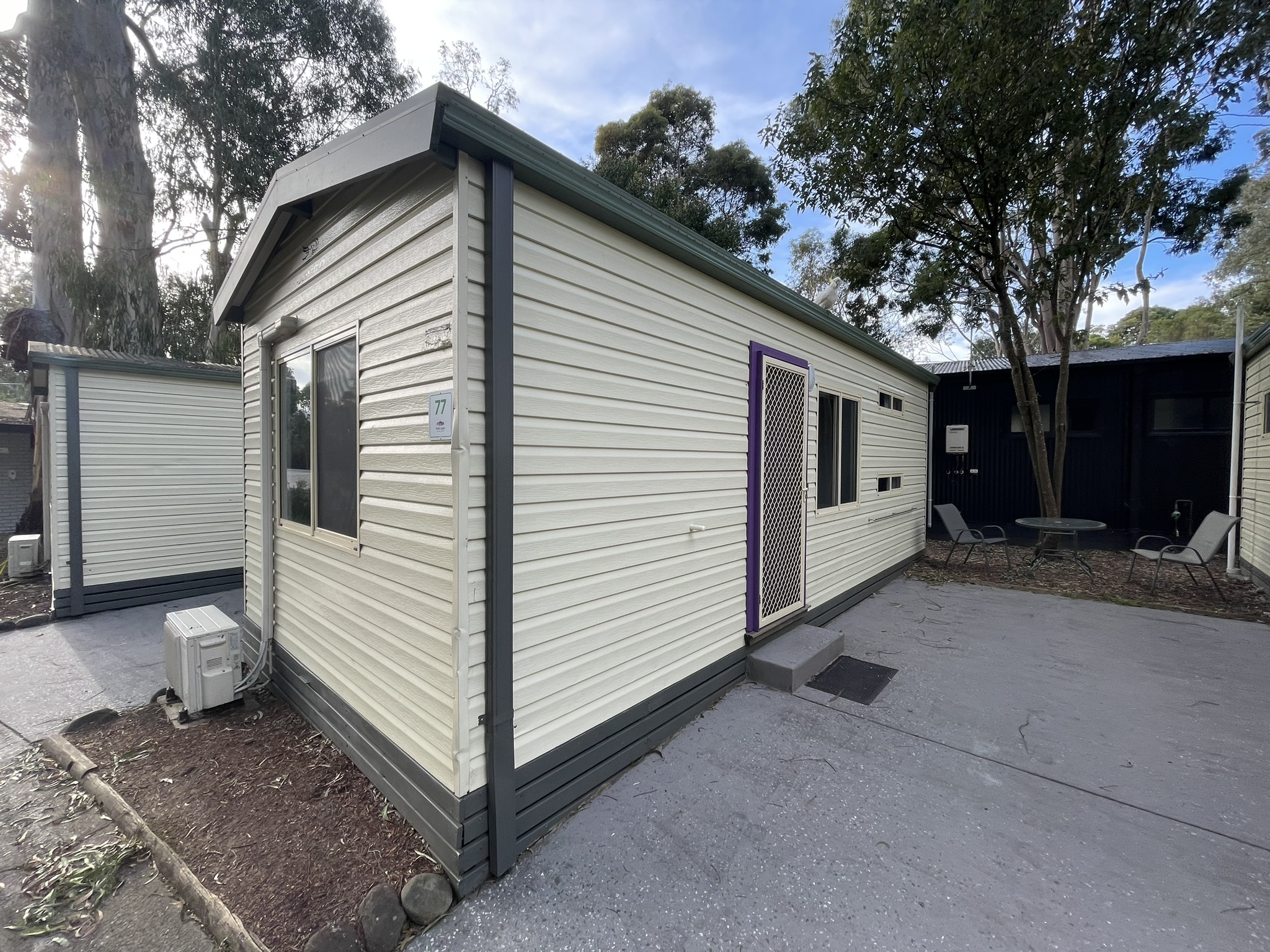 With a fun vintage flair, this retro-inspired cabin sleeps six and offers a cosy kitchenette, dining setting, and charming touches that make it a memorable base for your stay.